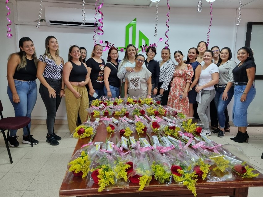 El 8 de marzo del 2024 se llevo a cabo la celebración del día de la mujer en las instalaciones de la Empresa para el Desarrollo Territorial – PROYECTA, este fue un momento donde los hombres de la empresa pudieron homenajear a nuestras compañeras, compartiendo un rico desayuno y entregando una rosa que refleja la belleza de nuestras compañeras