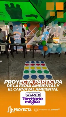 El equipo ambiental de PROYECTA participó en las actividades realizadas en el marco de las fiestas culturales del municipio de Salento, con motivo de sus 182 años. En este evento, se llevaron a cabo diversas dinámicas lúdicas y juegos dirigidos a niños y niñas de las escuelas rurales y urbanas, con el objetivo de enseñarles la correcta separación de residuos sólidos. La feria ambiental y el III Carnaval Ambiental, en el marco de ‘Salento, Territorio Mágico’, fueron espacios propicios para fomentar la conciencia ambiental entre los más jóvenes.