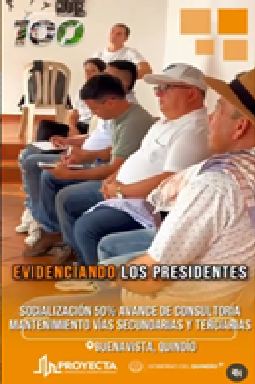 La Empresa para el Desarrollo Territorial – Proyecta, bajo la dirección de la ingeniera Lina Marcela Roldán Prieto y en cumplimiento de su compromiso con la transparencia y la participación ciudadana, realiza a esta hora en el teatro municipal de Buenavista la socialización del 50% de avance de la consultoría correspondiente al contrato de obra No. 002 de 2025, que contempla los estudios y diseños para la construcción de obras de rehabilitación en puntos críticos de las vías secundarias y terciarias del municipio cordillerano.