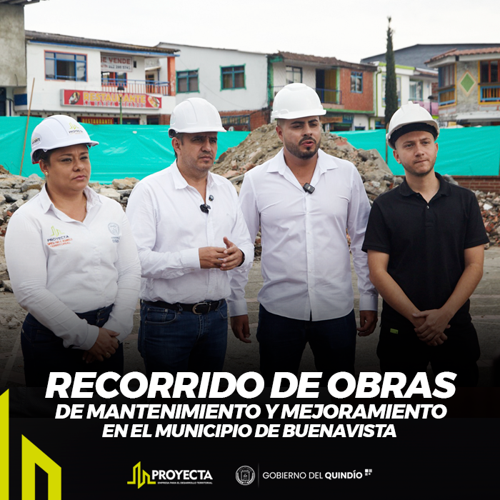 El pasado sábado 21 de junio, el gobernador del Quindío, Juan Miguel Galvis Bedoya; la gerente de la Empresa para el Desarrollo Territorial– PROYECTA, Lina Marcela Roldán Prieto; y el alcalde de Buenavista, Jhon Steban Aristizábal, realizaron un recorrido por este municipio para verificar el avance de las obras de mejoramiento que se ejecutan en la Casa de la Historia y la Plaza de Bolívar, dos espacios emblemáticos para la cultura y el turismo local.